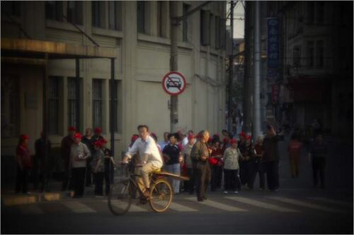 日本の高度成長期の団体旅行客を思い出す。同じ帽子をかぶり旗持ちの後を行列しながら観光するあれである。 数年前だったと思うが、日本の田舎から皇居に来ていたおばさん団体旅行客は、なんと白の割烹着を全員が着ていた。そんな風習が、まだ残っている事に…