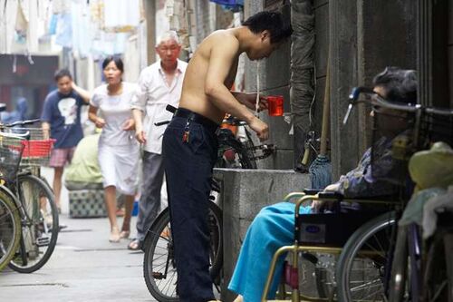 " 上海の路地裏は、生活空間の一部になっている。この付近の一世帯あたりの部屋の広さは、狭いところで約6畳くらい広い所でも12畳くらいだ。 その中にトイレも風呂も無い家庭が多い。トイレは、馬桶(マートン)と呼ばれる桶に用を足し共同トイレに捨てに行き…