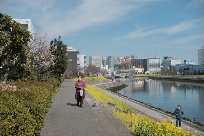 2018-03-05 東京は春 鮫洲で 写真日記 鮫洲駅前 鮫洲遊歩道 CP+に行く前に鮫洲駅で下車し、友人とピザ屋でランチ。待ち合わせの一時間ほど前に行き鮫洲周辺を散策したが、昔の自動車運転免許書き換えの人並みも無く昔の代書屋の面影もない。潮の香りのする遊歩道を歩くと、菜の花と気の早い桜の樹が一本花をつけていた。 本日の昼便で上海へ ☆X100F